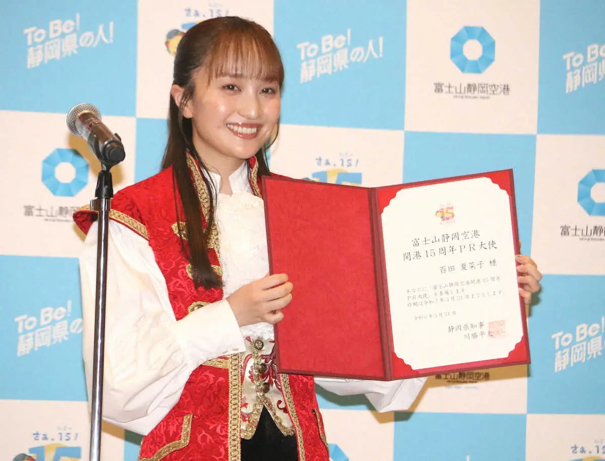 「ももいろクローバーZ」の百田夏菜子(29)が31日、都内で富士山静岡空港開港15周年PR大使委嘱式に出席した。