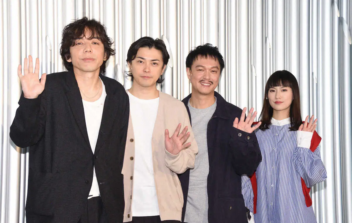 舞台「ハザカイキ」の取材会に登場した(左から)演出の三浦大輔氏、勝地涼、SUPER EIGHT丸山隆平、恒松祐里 (撮影・小田切 葉月)