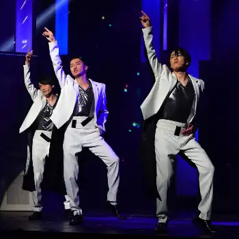 熱演するSnow Manの(左から)深澤辰哉、岩本照、宮舘涼太(撮影・藤山 由理)