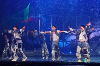 和の世界観に洋の要素を融合させたエンターテインメントがテーマ。高い身体能力を生かした激しい立ち回りや三番叟(さんばそう)など全編通して体を目いっぱい酷使。滴り落ちるほどの汗を流した宮舘は「演舞場がサウナのよう。舘汁が出ました」とユーモアたっぷりにハードさを語った。
