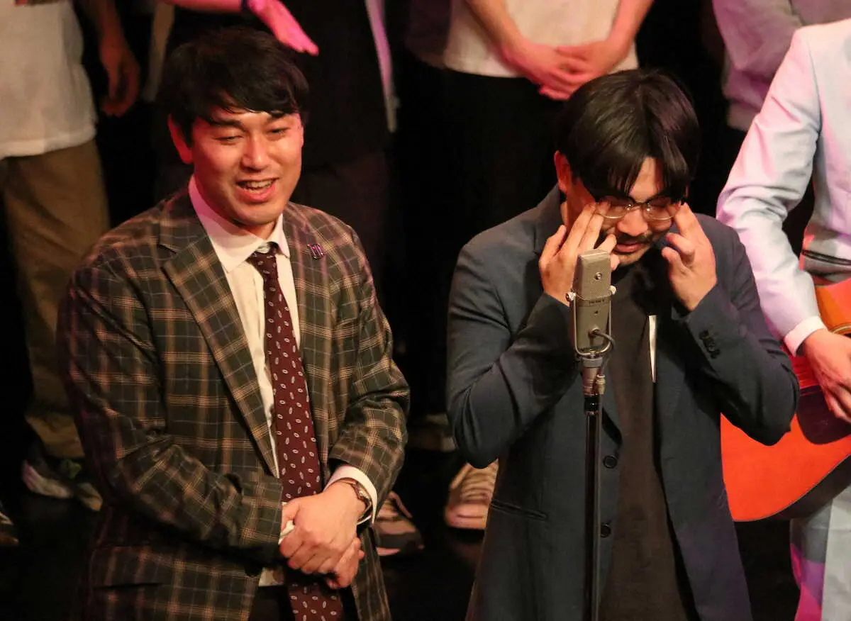 一方、相方の畠中悠(36)はギターを手に自作の曲を熱唱。「ダンビラムーチョ」大原優一(34)らバンドメンバーとステージを感動の渦に包んだ。