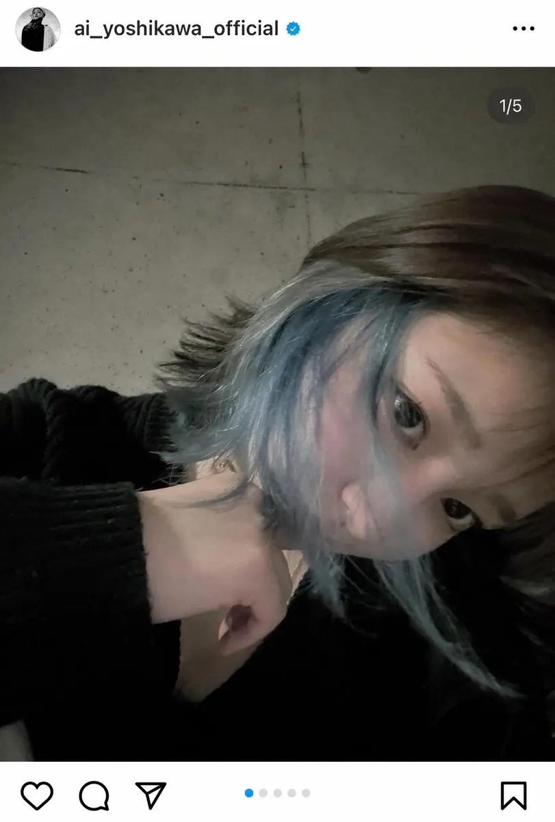 吉川は、青いハートマークや笑顔のマークとともに、新しいヘアスタイルで自撮りをアップ。ブルーのインナーカラーを入れた髪形を公開した。