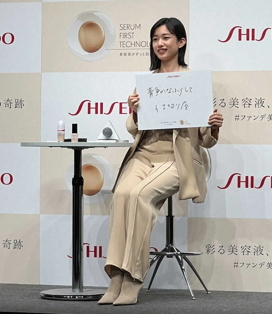 女優の河合優実(23)が2日、都内で行われた資生堂「ファンデ美容液」の発表会に出席した。