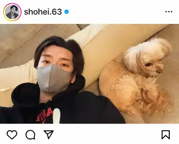 この投稿に「え、奥様に似てますね やっぱり夫婦は似ますよね」「翔平くんもぱっちゃんも可愛い」「どっちもかわいすぎ」「マスク姿が真剣佑に見えた」「それを言ってる翔平さんもかわいいです」「エブリィみてますよ」「最高です。犬ちゃんになりたいです」「いつもこういうショットお願いします」「自撮りっぽいの久々で、湧いてる」「イケメンすぎ」などの声が寄せられている。