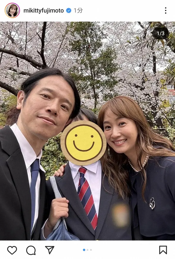 藤本美貴 「長男が中学生になりました」夫・庄司智春も交えた入学式親子ショットに「素敵な写真」の声