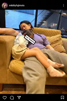 藤本は夫でお笑いコンビ「品川庄司」の庄司智春と次女が、自宅のソファーと思われる場所で寄り添いながら眠る写真をアップ。「癒しの塊」と添えた。