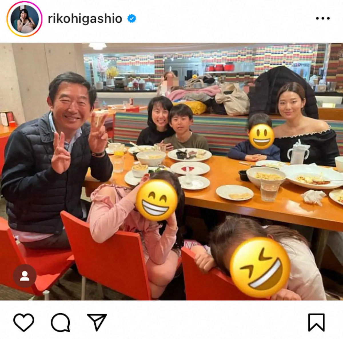 東尾が「春はお誕生日ラッシュ。家族揃ってお祝い」と投稿した写真には、夫の石田純一と3人の子供、さらに石田の娘であるすみれとその子供が写ったものが掲載。石田がピースサインで笑うなど、和気あいあいとした様子だった。