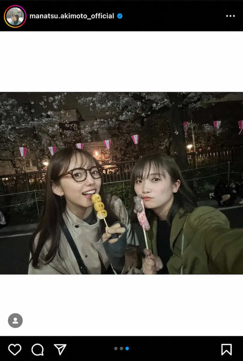 秋元真夏 「花よりバナナ」と元乃木坂仲間と夜桜花見へ!ファン大興奮「ずっ友だね」「可愛すぎる2S」