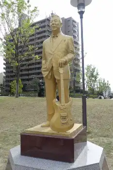 愛用する米国製のギターを手にした1メートル90の黄金像を見上げ「本当にありがとう」と喜んだ。
