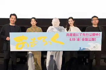 女優江口のりこ(43)と中条あやみ(27)が12日、W主演を務めた映画「あまろっく」(監督中村和宏、12日兵庫県で先行公開、18日全国公開)のご当地、兵庫・尼崎市内で舞台あいさつした。