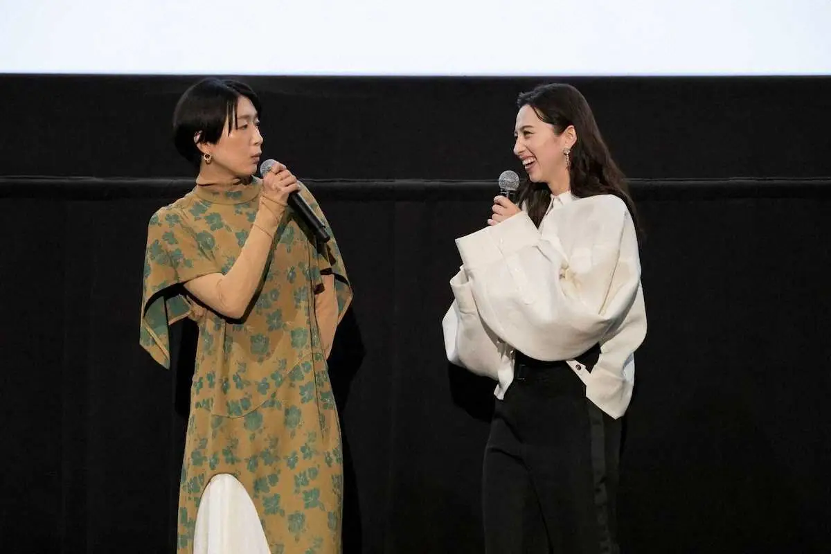 「あまろっく」の舞台あいさつに登場したW主演の江口のりこ(左)と中条あやみ