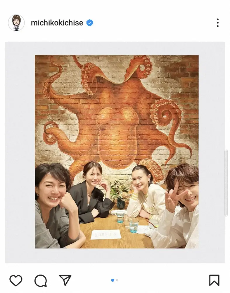 女優の吉瀬美智子(49)が14日、自身のインスタグラムを更新。仲良し女優との食事会ショットを披露した。
