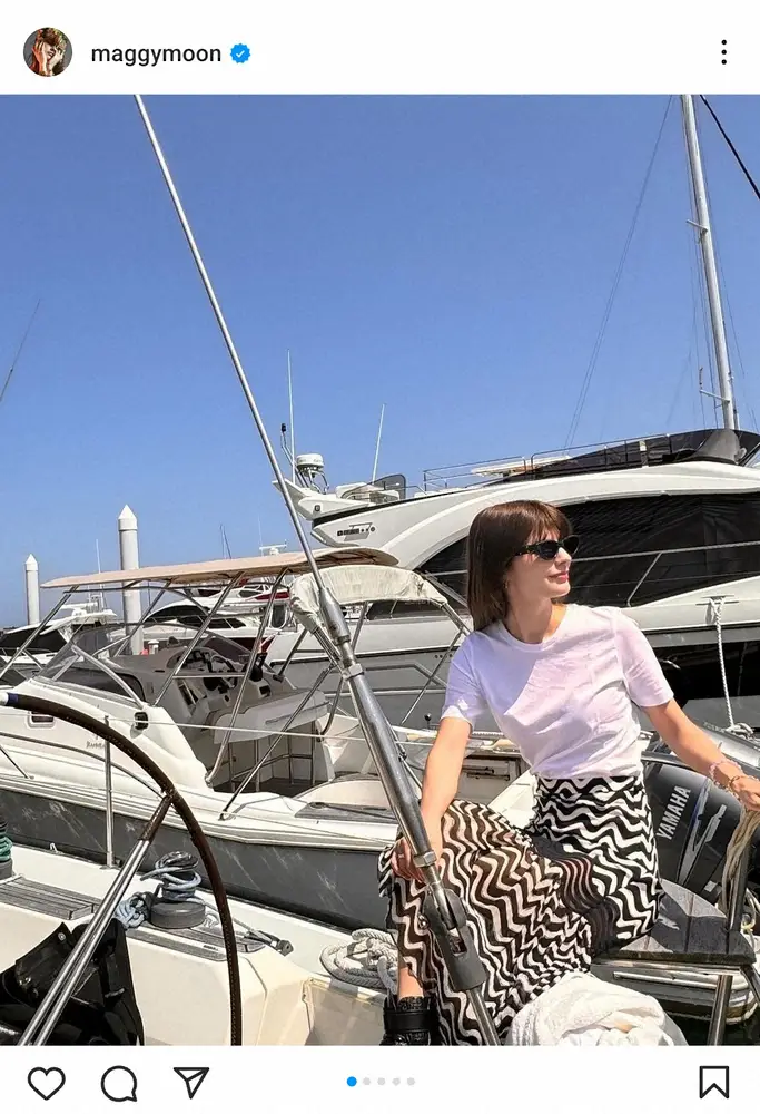 マギーは「お父さんとヨット探しの旅」とコメント。