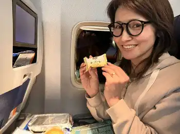 金子恵美氏 米国・航空会社のデザートはブルボンのお菓子でした