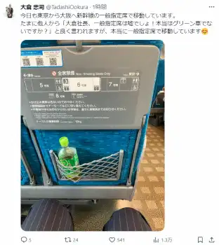 「鳥貴族」社長・大倉忠司氏 質素な移動に「嘘でしょ!」の声も「本当に一般指定席で移動しています」