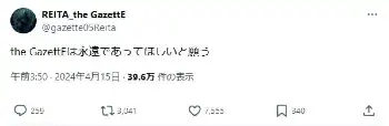 REITAさんのX(旧ツイッター)での最後の投稿は4月15日の午前3時50分。「the GazettEは永遠であってほしいと願う」とだけつづられていた。