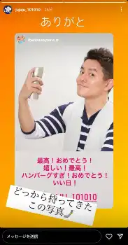 青山はストーリーズで「最高!おめでとう!嬉しい!最高!ハンバーグすぎ!おめでとう!いい日!」とコメント。“ハンバーグ師匠”こと井戸田の写真とアカウントを添えて祝福した。