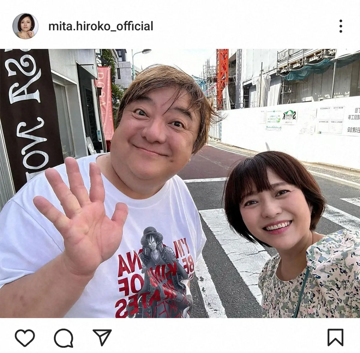 三田は2人で笑顔の写真を投稿し「ついこの前道でばったり彦ちゃんと遭遇 道に迷ってたのでめちゃ心強く親切に途中まで一緒に歩いてくれた♪」と報告。