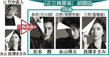 3兄弟の次男は物理学者で永山、三男は聖職者で長澤が演じる。長澤は三角関係の渦中にいる美女役も担当し、正反対の性格を持つ男女を演じ分ける演技力にも注目が集まる。
