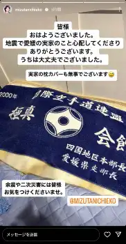 水谷はストーリーズで「皆様おはようございました」と切り出し、「地震で愛媛の実家のこと心配してくださりありがとうございます」とお礼を述べた。