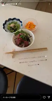 またストーリーズでは自宅キッチンを公開。「キッチンカウンターでぱぱっとお昼ごはん」伝え、「鰹の切り落としが200円ちょっとで買えた おいしかった~」とつづった。
