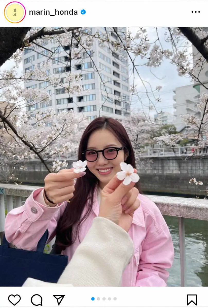 女子プロフィギュアスケーターの本田真凜さん(22)が、19日までに自身のインスタグラムを更新。満開の桜をバックに、桜色コーデでまとめたファッションが話題を呼んでいる。