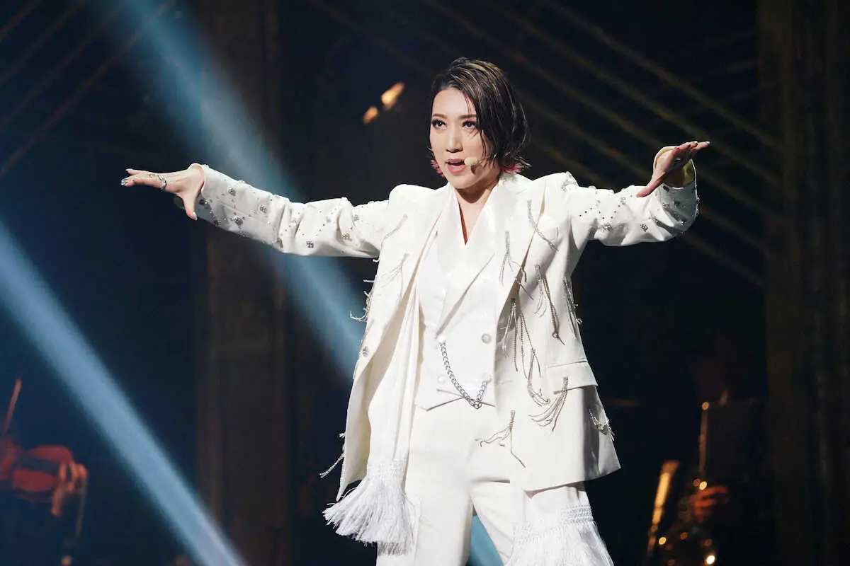 舞台では男役時代を彷彿(ほうふつ)させるスタイルや、当時は披露しなかった高いキーでのナンバーも聞かせた。