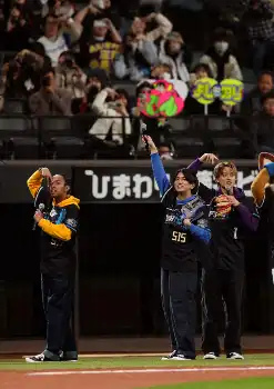 ファーストピッチ前にポーズを決める「Aぇ!group」の(左から草間リチャード敬太、正門良規、小島健(撮影・高橋 茂夫) Photo by スポニチ Aぇ!group 日本ハム―ロッテ戦で“Aぇ”感じの投球 来月15日CDデビュー ギャラリーで見る この記事のフォト 2024年04月20日の画像一覧 もっと見る 2024年04月20日の画像をもっと見る
