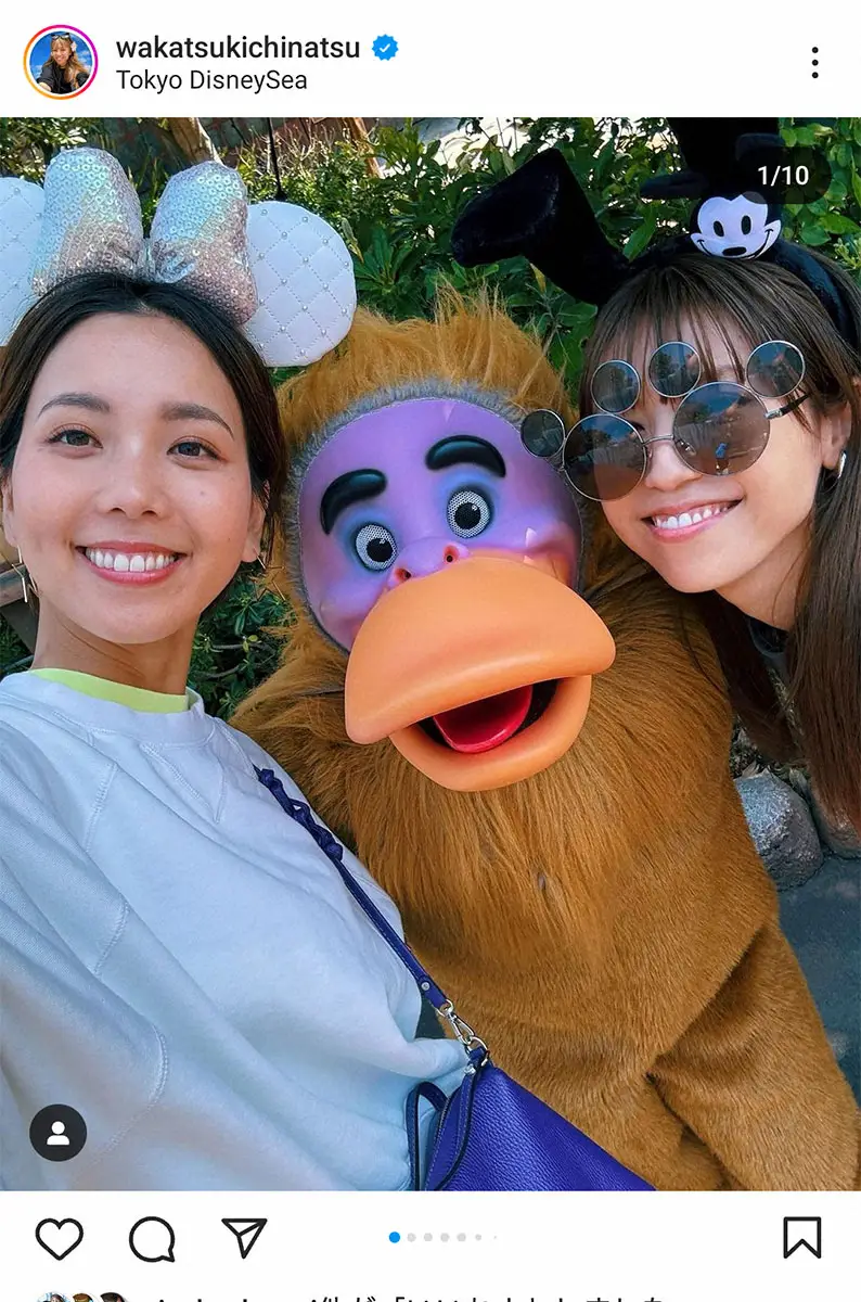 タレントの若槻千夏(39)が20日、自身のインスタグラムを更新し、仲の良いフリーアナウンサーのヒロド歩美(32)と東京ディズニーシーを訪れたことを報告。キャラクターとの写真の撮り方のマナーを注意され反省した。