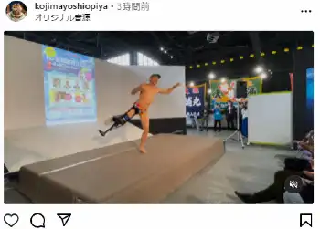 最新の投稿では、20日に富山で行われた「富山湾岸サイクリング2024前日祭」に出演した様子を公開。「氷見でライブ!ニュースタイルが出来上がりました」と添えて動画をアップした。l右足に器具をつけながらステージに登場。左足でケンケンしながら「はい!オッパッピー!」の持ちネタを披露した。