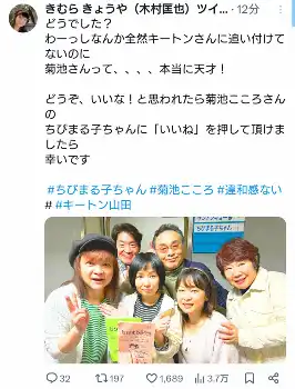 きむらきょうや まる子新声優の菊池こころ 絶賛「菊池さんって、、、、本当に天才!#違和感ない」