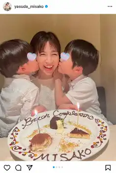 安田美沙子 42歳誕生日、息子2人からのキスショット公開「幸せいっぱいですね」「モテモテ」の声