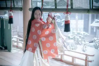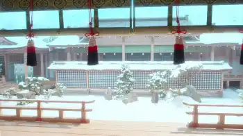 大河ドラマ「光る君へ」第16話。雪化粧した登華殿の庭(C)NHK