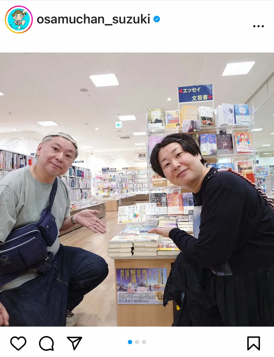 家族での伊勢旅行の様子をアップしている鈴木氏。「今日、伊勢に来たので 伊勢の本屋さん覗いたら『もう明日が待っている』がいいとこにありました。店長さんのはからいで、サイン本、急遽書かせていただきました!」と売り場に並ぶ最新の著作にサイン書いたことを報告した。