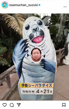 その後の投稿で、伊勢シーパラダイスでの写真をアップ。「妻が古田新太さんにちょっと似てることに気づきました」とつづり、アザラシの顔出しパネルから顔を出す妻の写真を公開した。