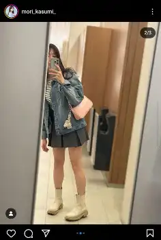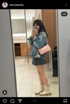 森は「たまには私服紹介」とつづり、ボーダーのカットソーにデニムのジャケット、グレーのミニスカートに白いブーツ、そして小さなピンクのバッグを合わせた私服コーディネートを披露。複数枚の写真をアップした。