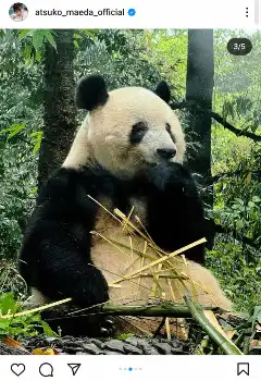 前田は「香香(シャンシャン)プリンセスに中国で会えました」とし「食べるとき目瞑りながら食べてたよ可愛いね」と報告したもの。