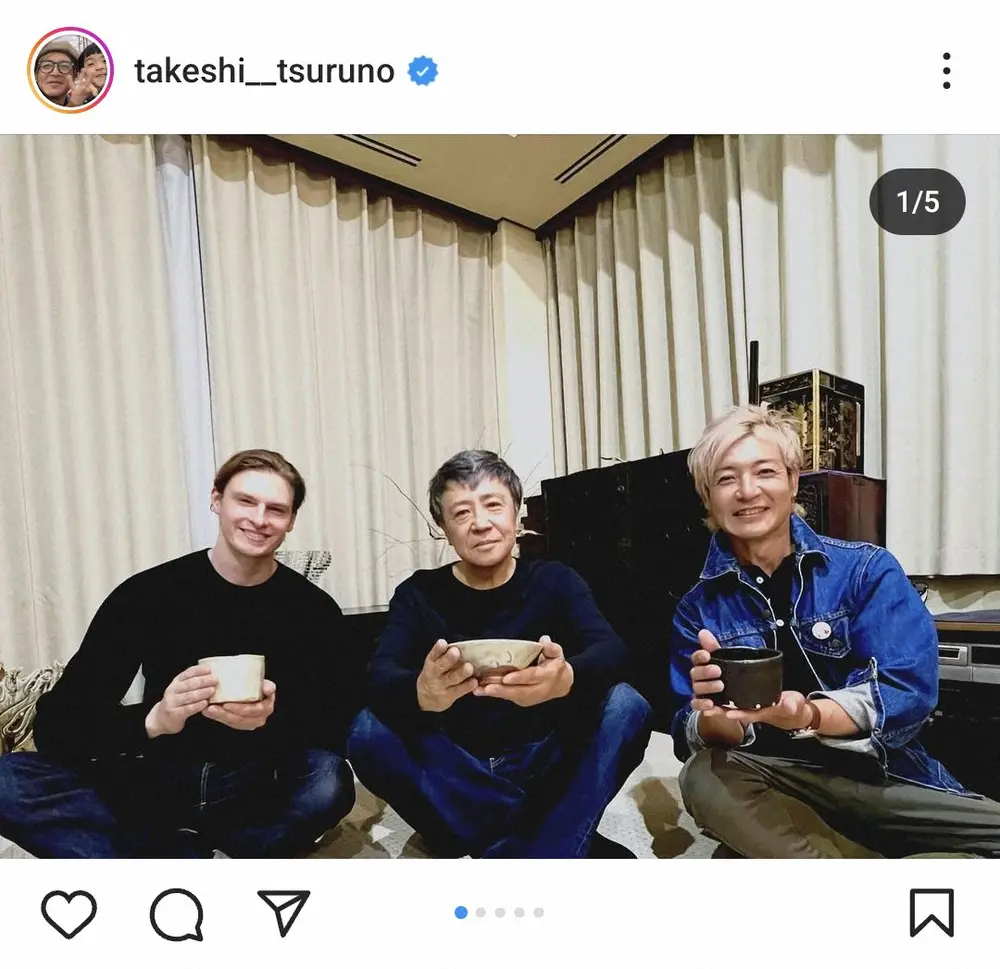 つるの剛士 大物歌手&人気庭師と「男のお茶会」3ショットに「凄い顔ぶれですね!」「みんな、素敵」の声