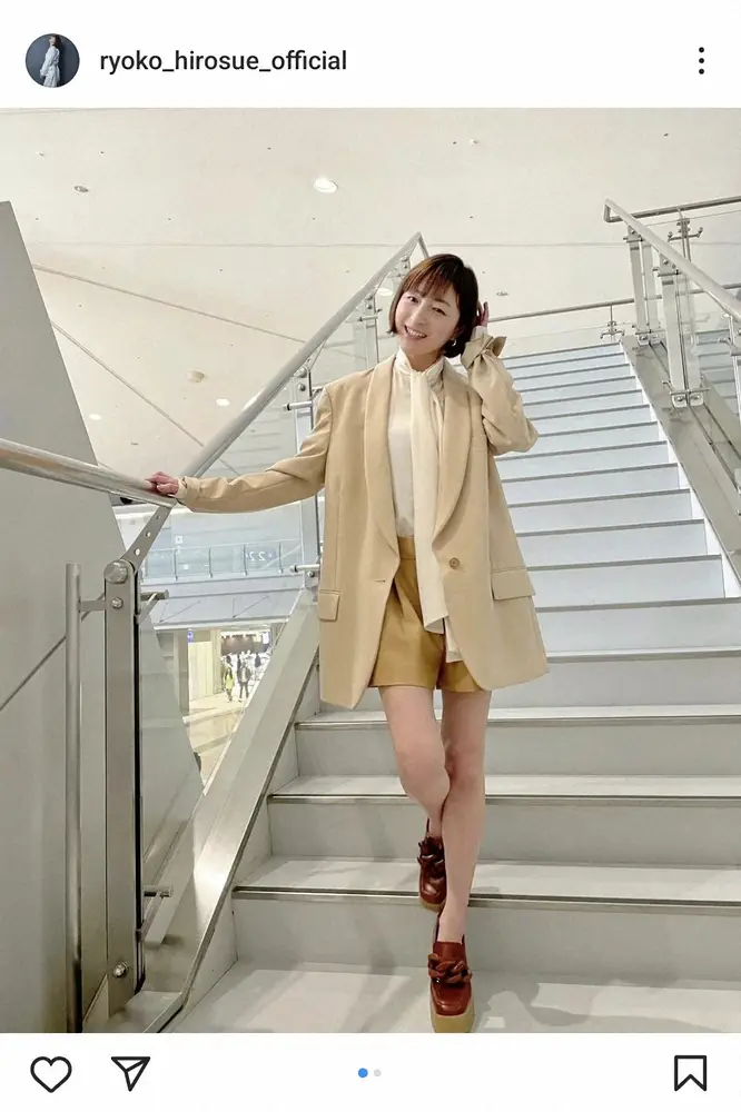 広末は17日、都内で行われた「FaW Tokyo(ファッションワールド東京) 2024春」の廃棄物ZEROプロジェクト「REBORN by BIOTECHWORKS-H2」に特別ゲストとして出演した。この日の投稿では「先日のイベントのつづき」とつづると、ベージュのジャケット、アイボリーのブラウスにベージュのショートーパンツ、茶色の革靴の全身ショットをアップ。