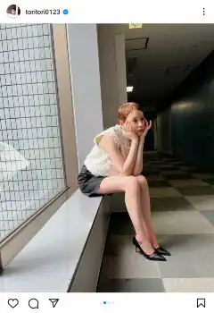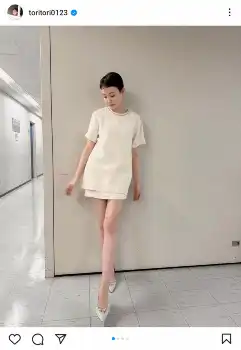 「ショートになって似合う服ががらりと変わったので、スタイリストさんと話し合いながら決めてます~ いつもすてきな服を持ってきてくださり、感謝」とつづり、超ミニ丈のファッションでポーズを取った写真を披露した。