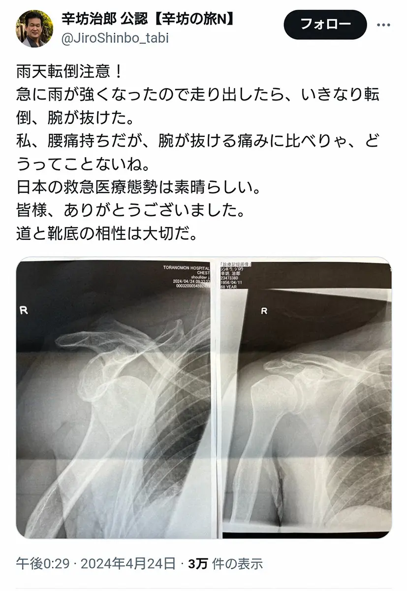 辛坊治郎氏 Photo by スポニチ 辛坊治郎氏 雨で転倒し右肩脱臼「腕があっち方向に曲がったきり、普通の… ギャラリーで見る この記事のフォト 2024年04月24日の画像一覧 もっと見る 2024年04月24日の画像をもっと見る