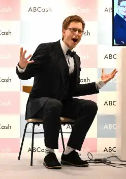 金融教育ベンチャー・ABCash Technologiesの“特別講師”を務めるジェイソン。自身も、詐欺業者に画像を不正利用された経験があり、近年多発しているSNS型投資詐欺をはじめとする怪しい投資詐欺などから身を守るための知恵を伝えた。