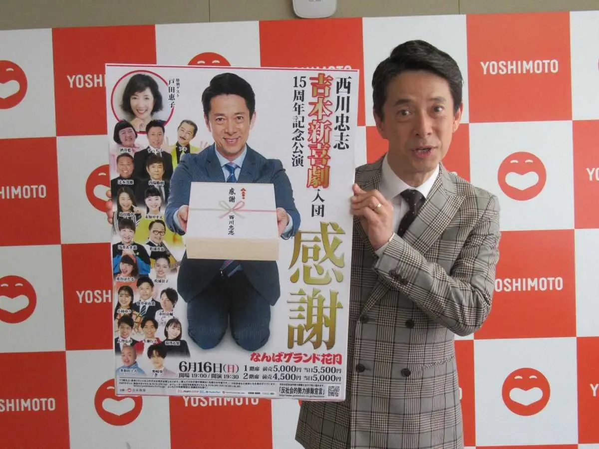 吉本新喜劇の西川忠志(56)は24日、「第27回GM会見」に出席。「吉本新喜劇入団15周年記念公演 感謝」(6月16日、なんばグランド花月)について「節目の15年。こんなにうれしいことはありません」と語った。