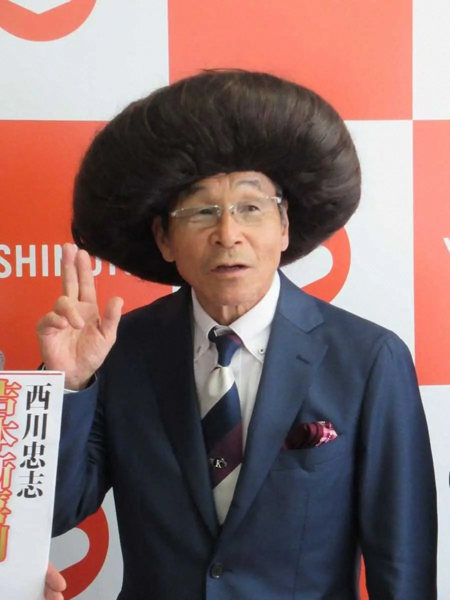 吉本新喜劇GM会見に、末成映薫の巨大カツラをつけて登場した間寛平