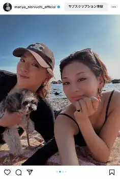 歌手でモデルの西内まりや(30)が25日までに自身のインスタグラムを更新。海沿いで寝そべりながら愛犬や姉でモデルの西内ひろとの2ショットを投稿した。