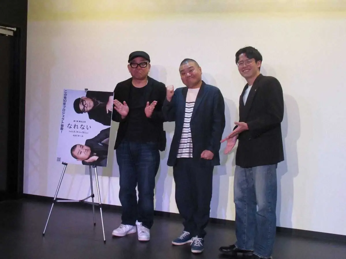 吉本新喜劇の川畑泰史(56)、お笑いコンビ「矢野・兵動」の兵動大樹(53)が25日、今後10年間で様々な舞台公演を作り上げていく「この先10年プロジェクト」を発足。第1弾の舞台公演「なれない」(6月14~16日、ABCホール)の開催発表会見に出席し、川畑は「同期の兵動君とは昔から一緒に何かをやりたいと思ってた。楽しみ」。兵動は「お芝居でも笑いを取れるように。50代、60代の同世代の方にオッサン2人のチャンレンジを見てほしい」と抱負を語った。演出は大阪芸大4回生で劇団「餓鬼の断食」を主宰する川村智基氏(22)。