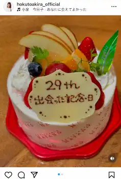 北斗は「出会って今日で29年目」と投稿。「家に帰ったら ケーキを用意してくれていました 有難うパパ!!」と佐々木との2ショット写真に「29th 出会った記念日」とデコレーションされたケーキを持った写真を掲載した。