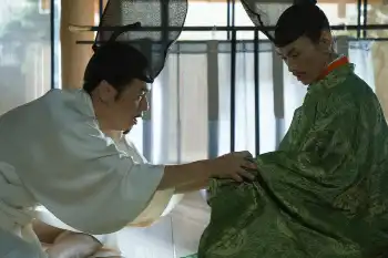 大河ドラマ「光る君へ」第17話。藤原道隆(井浦新・中央)は一条天皇に「伊周を関白に!」と迫り…(C)NHK