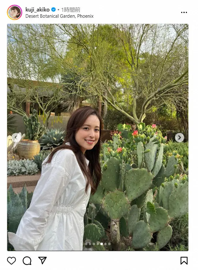 久慈は「ArizonaのDesert Botanical Garden」と書き出し、「アリゾナの州木パロヴェルデの黄色い花とサボテンの花のお花見をしてきました」と花見に行ったことを報告。「日本の桜のお花見のように色とりどりのサボテンのお花見をしに沢山の人が来ていました」とつづった。