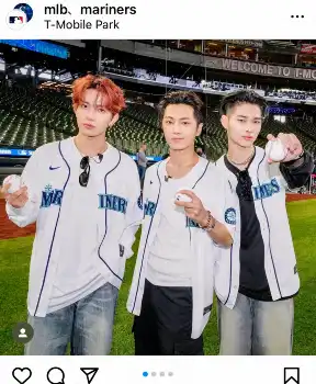 ニキは「51」、ヒスンは「49」、ジェイは「19」の背番号が入ったマリナーズのユニホームに身を包み、3人が横並びでマウンド付近に立ってそれぞれ捕手めがけ投げ込んだ。